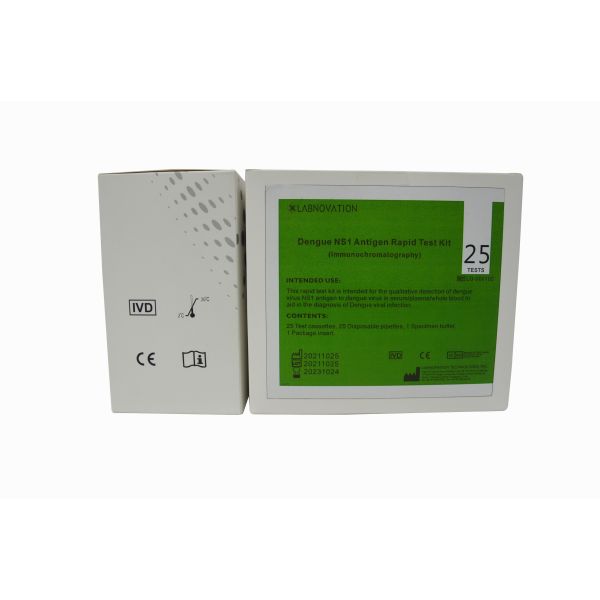 The Dengue NS1 Antigen Rapid Test Kit is a rapid chromatographic immunoassay for the qualitative detection dengue virus NS1 antigen to dengue virus in serum/plasma/whole blood to aid in the diagnosis of Dengue viral infection.